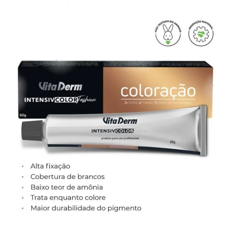 Cores disponíveis: 1.0, 3.0, 4.0, 5.0, 6.0, 7.0, 8.0, 9.0, 10.0, 6.1, 7.1, 8.1, 66.66, 66.62, 5.3, 7.3, 8.31, 4.77, 6.7, 7.7, 6.41, 7.12, 9.13, 12.01, 12.12, RC1000, 5.20, M10, M11, M22, M66, 9.89, 8.44 .... ENVIAR MENSAGEM com as 3 cores que deseja e ver a disponibilidade. Finalidade: A Coloração Creme Intensiv Color Fashion tem sua fórmula enriquecida com exclusivo complexo Phytoshine que prolonga o brihlo deixando os cabelos com aspecto comum.Atuação 3D: Brilho, Maior Fixação e Durabilidade.Composição: Aqua (water), tetrasodium edta, sodium metabisulfite, cocamide dea, lauryl pyrrolidone, parfum (fragrance), butyrospermum parkii butter, oleile acid, cetrimonium chloride, ammonium lauryl sulfate, ceteareth-20, cetearyl alcohol, propylene glycol, cyclodextrin, phenyl trimethicone, trimethylsilylamodimethicone, lsolaureth-6, glycine soja seed extract, xanthan gum, triticum vulgare germ oil, ammonium hydroxide, sodium erythorbate, hexyl cinnamal, hydroxyisohexyl-3-cyclohexene carboxaldehyde, d-limonene.Pode conter: P-phenylenediamine, m-aminophenol, resorcionol, phenyl, methyl pyrazolone, 2,4 diaminophenoxyethanol hcl, 4-amino-2 hydmxitoluene, p-aminophenol, 2-methyl 5- hydroxyethylaminophenol, tbhq, n, n-bis-(2- hydroxyethyl) -p-phenylenediamine, sulfate, 2- amino-4- hydroxyethyl- aminosisole sulfate, 2- methylresorcionol, 4-amino-m-cresol, toluene-2,5-diamine sulfate, 1-naphthol, 4,chloroisorcionol, 1-hydroxyethyl, 4,5-diamino pyrazole sulfate, 5-amino-6-chloro o-cresol, 2-6- dihydroxyethylamino, p-phenylene- diamine sulfate.Contém: Fenilenodiaminas e Resorcinol e amônia. Usar luvas adequadas.PARA TONALIDADE, CLAREAMENTO E ESCURECIMENTO:A escolha da tonalidade deve ser feita em função da cor igual do grau de clareamento ou escurecimento e da % dos fios brancos.Usar luvas apropriadas.Utilizar exclusivamente os oxidantes Vita Derm.Em um recipiente não metálico, coloque o conteúdo do tubo (60g) da coloração Intensiv Color Fashion.Adicione 90ml de Loção Reveladora Vita Derm até obter uma mistura homogênea e cremosa. Nos tons clareadores utilizar a Loção Reveladora Vita Derm 40V na proporção 1:2.Aplique com um pincel sobre os cabelos secos ou úmidos e com o couro cabeludo não lavado, mecha a mecha. Iniciar a aplicação pela raiz. Obs.: aplicar generosamente a mistura na raiz para garantir uma perfeita cobertura dos cabelos brancos.Tempo de Pausa: 30 a 55 minutos, dependendo do tom desejado e da escolha da Loção Reveladora.Antes de enxaguar, emulsione os cabelos adicionando água morna em pequenas quantidades, massageando-os. Enxaguar bem os cabelos após a aplicação. Lave os cabelos com Shampoo Vita Derm e enxague bem até que a água fique totalmente clara. Após o Shampoo, use o condicionador Vita Derm adequado para seu tipo de cabelo.PARA COBERTURA DE BRANCOS COM AS TONALIDADES 6.0, 7.0 E 8.0:Utilizar a proporção de 1:1/5 da Loção Reveladora de acordo com o tom desejado.Respeitar o tempo de pausa de 55 minutos (devido necessidade de preenchimento e fixação de pigmentos).Começar a aplicação pela nuca ou onde existe maior concentração de fios brancos.Para tonalidade 6.66, 7.66, 6.64, 6.46, 6.75, 66.45, 66.62, 66.66, 77.45: utilizar a loção Reveladora 30V na proporção de 1:1/5 e tempo de pausa de 40 minutos.Lembre-se: Não utilizar esses produtos sobre cabelos em que tenham sido aplicados qualquer tipo de henê, tinta progressiva ou coloração a base de sais metálicos.CUIDADOS: Contém substâncias passivas de causar irritação na pele de determinadas pessoas. Antes de usar, faça a prova do toque. Contém amônia. Somente para Uso Profissional. Enxaguar bem os cabelos após a aplicação. Pode causar reação alérgica. Fazer a prova do toque. Não usar nos cílios e sobrancelhas. Não aplicar se o couro cabeludo estiver irritado ou lesionado. Em caso de contato com os olhos, lavar imediatamente com água em abundância. Manter fora do alcance de crianças. Conservar em local fresco (temperatura não superior a 40ºC).Prova do Toque: Vide Embalagem.