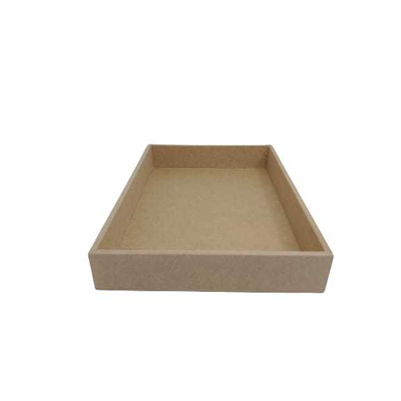 3 unidades de bandejas sem alça. Medidas: 35 cm de comprimento, 25 cm de largura e 6,5 cm de altura (medidas externas). Material: laterais com mdf cru de 6mm de espessura e fundo com mdf cru de 2,8mm de espessura. Produto artesanal. As bandejas são enviadas montadas.