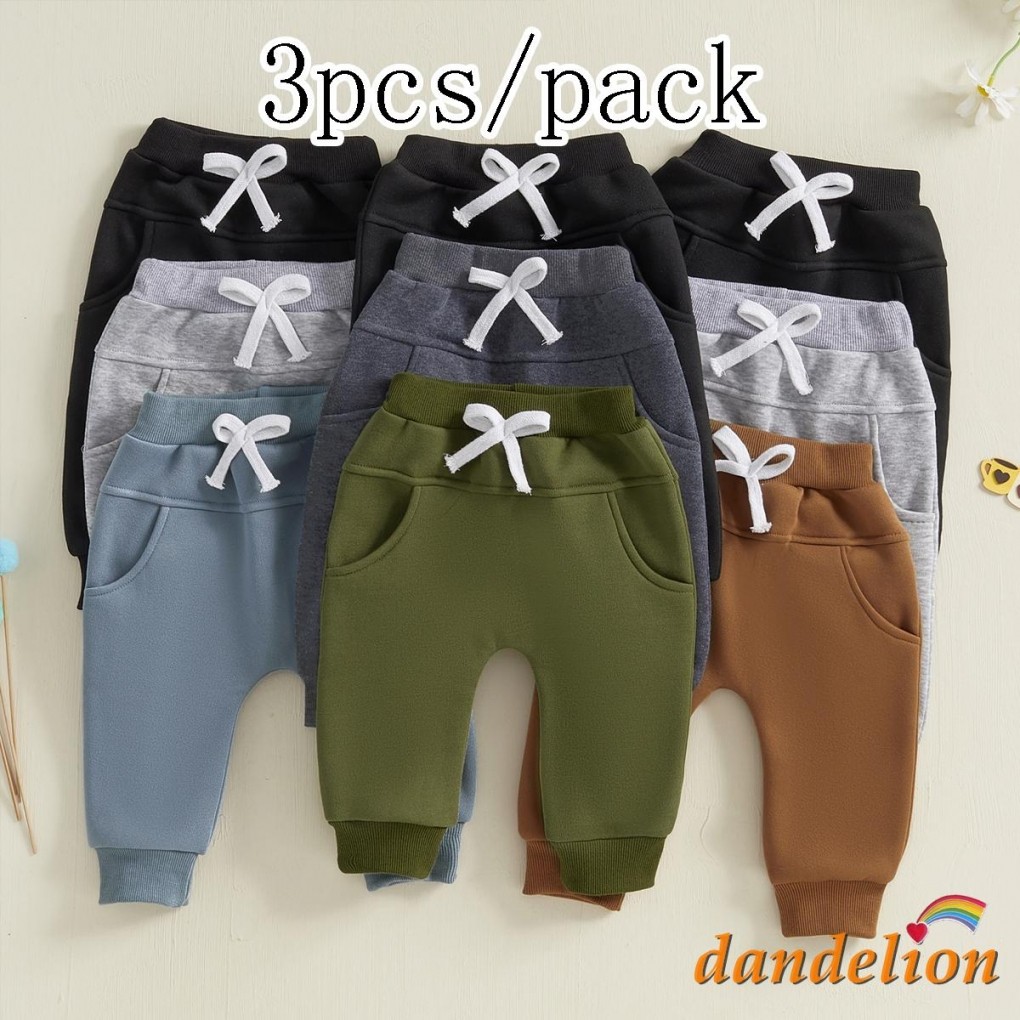 3 Unidades/Pacote Bebê Meninos Moletom Cor Sólida Cintura Elástica Calças Compridas Casuais Para 0-3 Anos