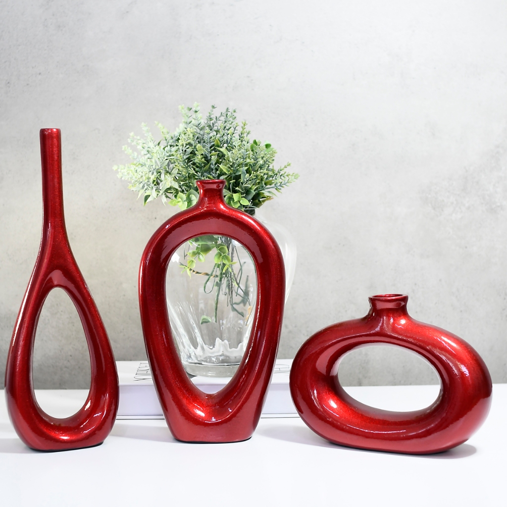 3 Vasos Enfeites Cerâmica Moderno Centro Mesa Decorativo Peças Casa para Rack Sala Aparador Conjunto