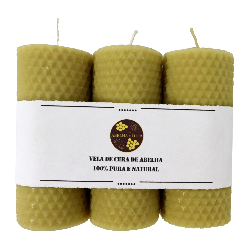 3 Vela De Cera De Abelha 100% Pura E Natural 10x4,5 Cm