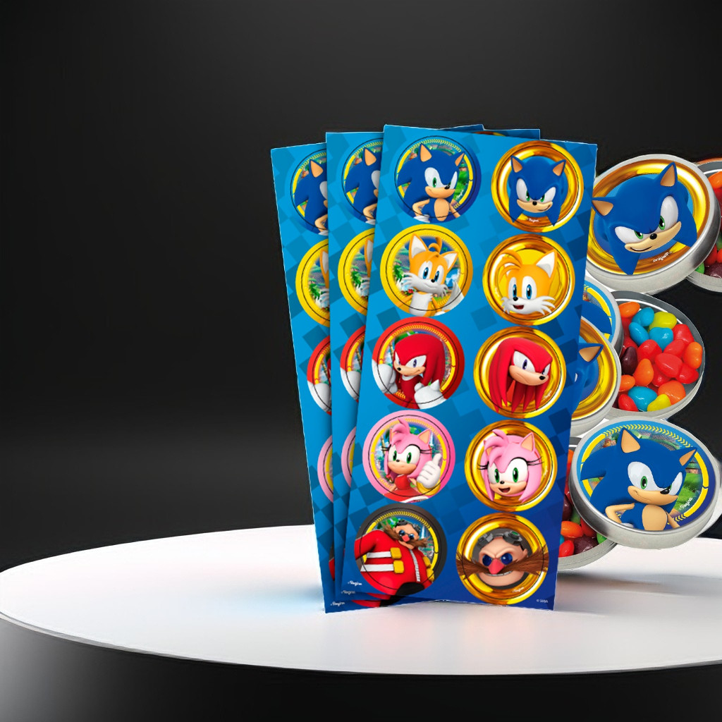 30 Adesivos Sonic Redondo Decoração Festa Aniversário