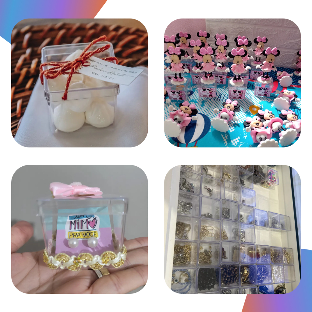 Livrieri Brindes – O toque especial que sua festa merece! Surpreenda seus convidados com lembrancinhas cheias de charme e qualidade! Nossas caixinhas são perfeitas para doces, amêndoas, bombons, terços, mini brindes e lembranças personalizadas. Fabricadas em material resistente, com brilho impecável e acabamento arredondado, garantem beleza e sofisticação para qualquer tipo de evento. Diferenciais do produto: * Design moderno com tampa "clic" fácil de abrir e fechar * Cantos arredondados para acabamento fino e seguro * Material de alta qualidade: Poliestireno (PS), resistente e durável * Capacidade ideal: 90ml – comporta doces, balas e até Sonho de Valsa! * Medidas: 5cm (largura superior) x 4,5cm (base) x 4,5cm (altura) (A base é levemente menor por conta do formato afunilado) Cores disponível Transparente. Produto vendido vazio – não fazemos personalização. Ideal para você decorar com seu estilo! O frete é calculado automaticamente pela plataforma. Não temos controle sobre os valores. Livrieri Brindes – Qualidade, brilho e delicadeza em cada detalhe. Sua festa, do jeitinho que você sempre sonhou!