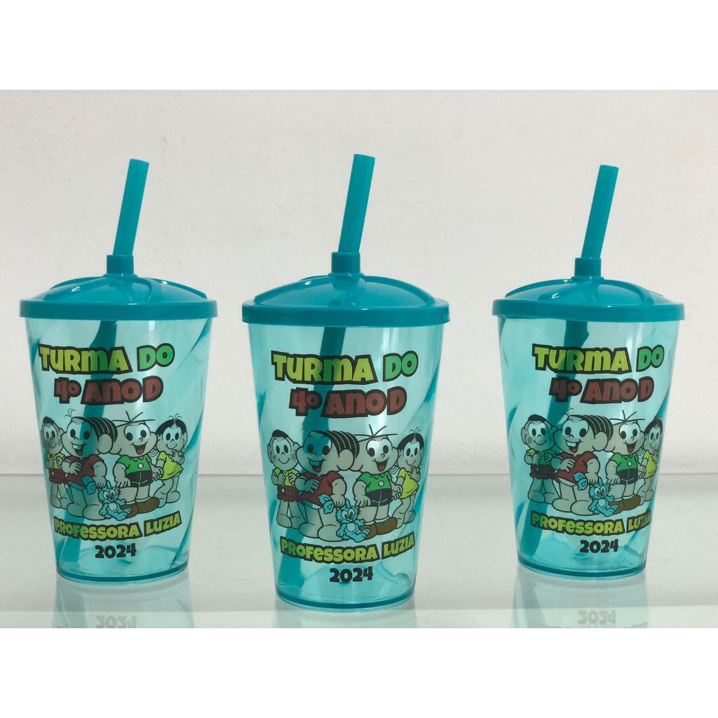 30 Copos Twister 300ml Com Tampa e Canudo Personalizado Turma da Mônica