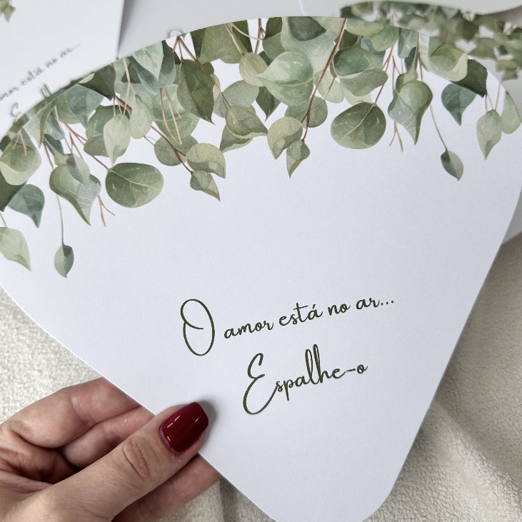 30 Leque Personalizado de Casamento Pronta Entrega para Convidados 🌿💍 O leque personalizado de casamento pronta entrega é o detalhe perfeito para tornar seu grande dia ainda mais especial — principalmente em casamentos ao ar livre. Além de elegante, ele é funcional e proporciona conforto aos convidados em cerimônias no campo, na praia ou em espaços abertos. Nosso leque para casamento é produzido em papel branco importado offset liso 250g, com impressão em alta qualidade, garantindo acabamento sofisticado e excelente durabilidade. Um item que une beleza, praticidade e organização, sendo ideal para noivas que precisam de uma solução rápida, sem abrir mão do charme. ✨ Pronta entrega é o nosso grande diferencial! Perfeito para quem tem pouco prazo e deseja receber tudo com agilidade. Especificações Técnicas – Leque para Casamento * Tamanho: 20x21 cm (tamanho ideal para manuseio confortável) * Material: Papel branco importado offset liso 250g * Impressão: Alta qualidade * Modelo: Arte padrão (não personalizável) * Disponibilidade: Pronta entrega Produto Artesanal – Observações Importantes Trabalhamos com produção artesanal, o que garante exclusividade e cuidado em cada detalhe. Por esse motivo, na impressão final, podem ocorrer leves variações na centralização da imagem em relação à arte apresentada. Além disso, os cortes e refiles podem apresentar pequenas variações, devido aos ajustes técnicos dos equipamentos utilizados no processo de produção. Pequenas variações de tonalidade podem ocorrer devido à iluminação da fotografia ou configuração de cada monitor. Cada leque é cuidadosamente revisado antes do envio, mantendo o padrão de qualidade do nosso ateliê. Políticas e Prazos 📦 Envio imediato após confirmação do pagamento, respeitando o prazo da transportadora conforme a região. ⚠️ Por se tratar de produto pronta entrega com arte padrão, não realizamos alterações no layout. 🔁 De acordo com o Art. 49 do Código de Defesa do Consumidor, o prazo para solicitação de cancelamento é de até 7 dias corridos após o recebimento, desde que o produto não tenha sido utilizado e esteja em perfeitas condições. 🚚 Confira atentamente o endereço de entrega no momento da compra. Em caso de erro cadastral, o reenvio será por conta do comprador. Garanta agora o seu leque para casamento ao ar livre e proporcione conforto e elegância aos seus convidados 🌿✨ Ideal para quem busca leque de casamento pronta entrega para convidados com envio rápido 💌