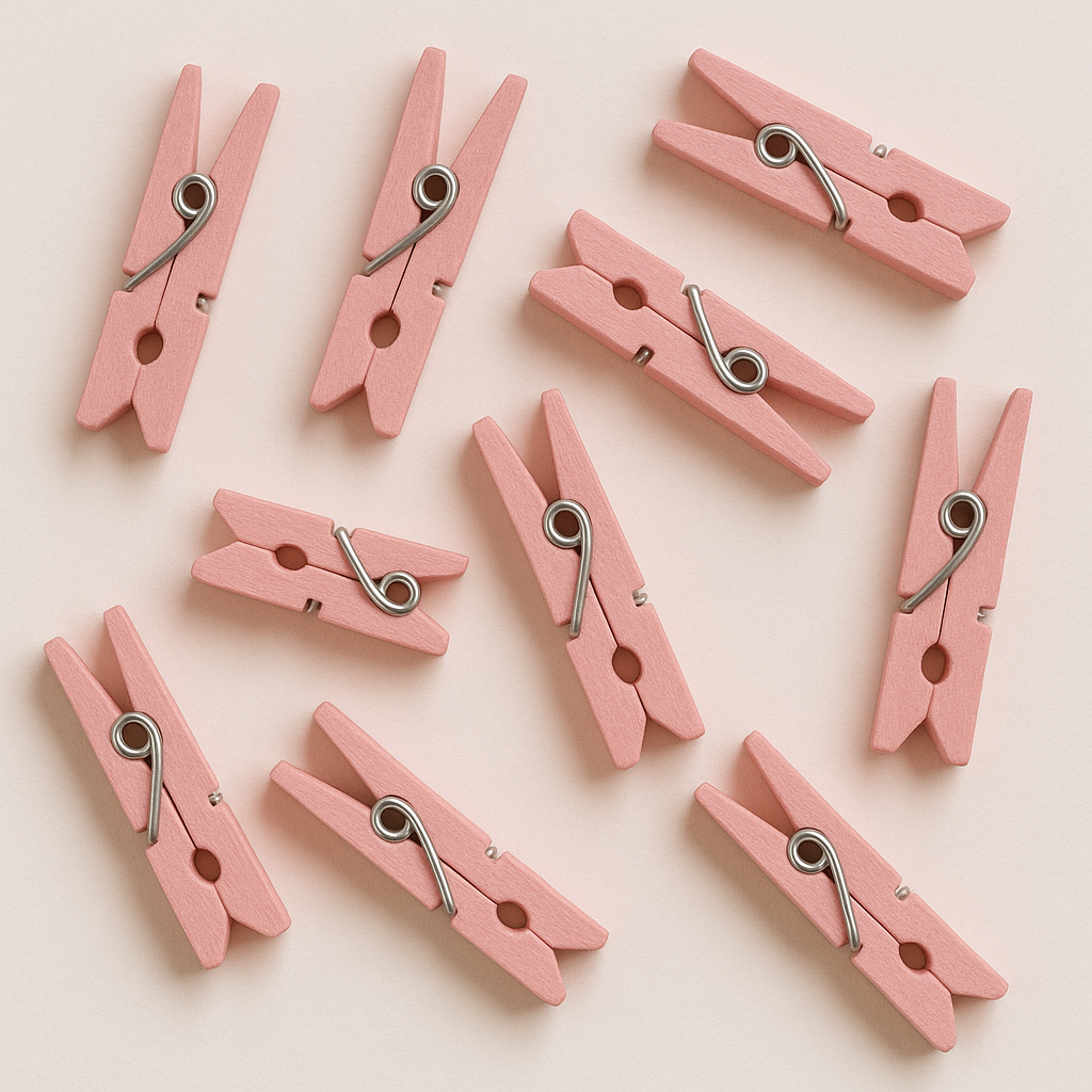 30 Mini Prendedores 3cm – Multiuso para Roupas e Artesanato 🔹 Mini prendedores práticos, resistentes e versáteis, perfeitos para o dia a dia! Esses mini prendedores de varal de 3cm são ideais para organizar roupas leves, pendurar fotos, lembrancinhas, decorações e até auxiliar em projetos de artesanato. ✨ Características: Tamanho: 3 cm (mini) Material resistente e de longa duração Leves, compactos e fáceis de usar Acabamento liso, que não danifica tecidos ou papéis 🎨 Opções de cores disponíveis: Bege (clássico e discreto) Vermelho Preto Rosa Azul Branco Ciano ✅ Usos recomendados: Varal de roupas leves Fotos e recados em murais ou painéis Decorações de festas Trabalhos escolares e artesanato Organize, decore e crie com praticidade e estilo!