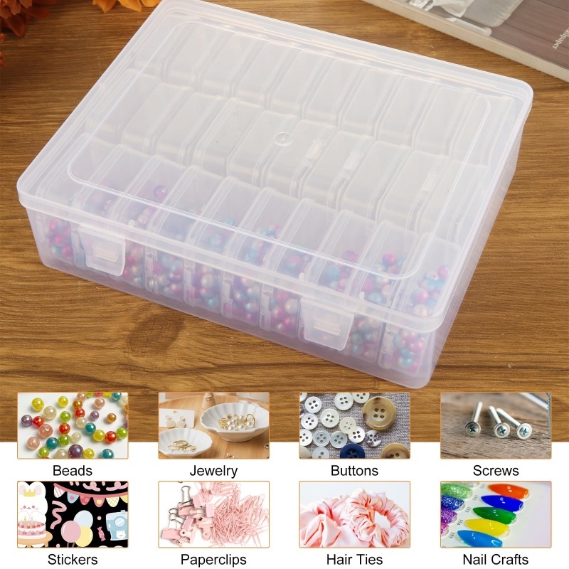 Caixa para Armazenamento com 30 Potes Quadrados - Transparente 30 compartimentos removíveis com tampas Caixa principal com trava de segurança Material durável e leve Ideal para casa, artesanato, viagens ou escritório Esta caixa contém 30 potes quadrados com tampas e é perfeita para quem valoriza praticidade e organização. Feita de plástico transparente e durável, permite fácil visualização do conteúdo e armazenamento seguro. É ideal para armazenar miçangas, pedras preciosas, peças pequenas, medicamentos, especiarias ou qualquer item pequeno. Cada pote possui uma tampa hermética para evitar derramamentos. Dimensões da caixa externa: 17,5 x 22 x 6 cm Dimensões da caixa interna: 5,5 x 5,5 x 2 cm
