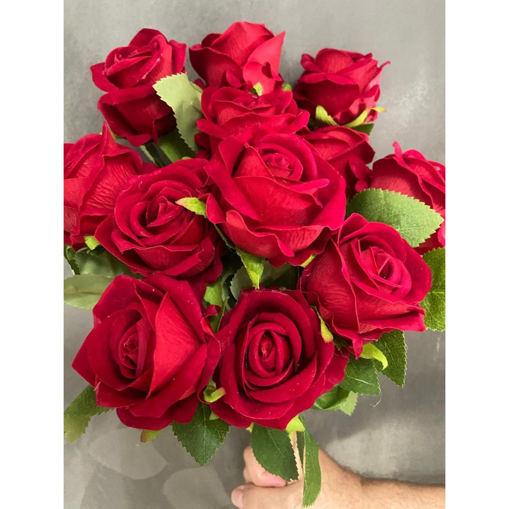 30 Rosas Artificial Vermelha Aveludada Individual Dia Das Mães Decoração Arranjo Flor