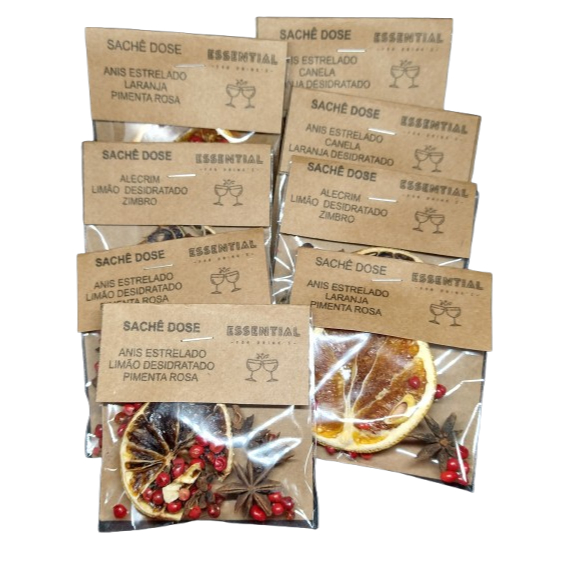 Kit Sachês Dose com 30 Unidades. O Kit será enviado com três unidades de cada sabor ou de acordo com a disponibilidade do estoque, abaixo sabores: * Sachê: Anis Estrelado, Limão Desidratado e Pimenta Rosa; * Sachê: Limão Desidratado, Pimenta Rosa e Zimbro; * Sachê: Anis Estrelado, Laranja Desidratada e Pimenta Rosa; * Sachê: Anis Estrelado, Canela e Laranja Desidratada; * Sachê: Anis Estrelado, Coco e Zimbro; * Sachê: Coco, Cravo da Índia e Pimenta Rosa; * Sachê: Anis, Pimenta Rosa e Zimbro; * Sachê: Mix Frutas Vermelhas; * Sachê: Cranberry, Laranja Desidratada e Pimenta Rosa; * Sachê: Blueberry , Limão Desidratado e Pimenta Rosa Dúvidas nos envie mensagem.