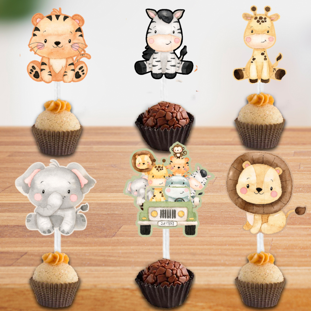 30 Tags Toppers para Docinho Doces Safari menino / menina