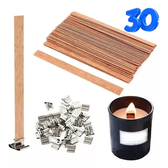 30 Unid. Pavio De Madeira + 30 Ilhos De Metal Para Velas Ecologica Queima Estavel