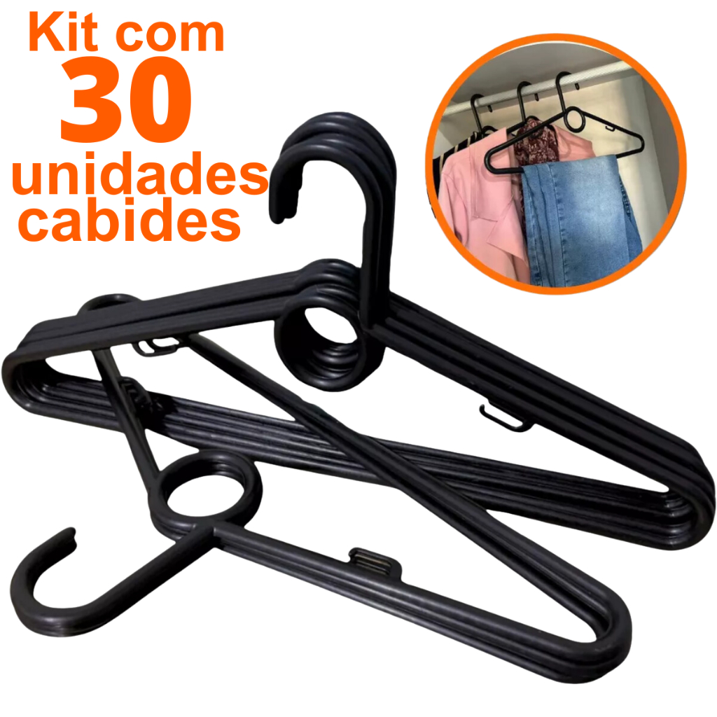 30 Unidades de Cabides Adulto Preto Reforçado