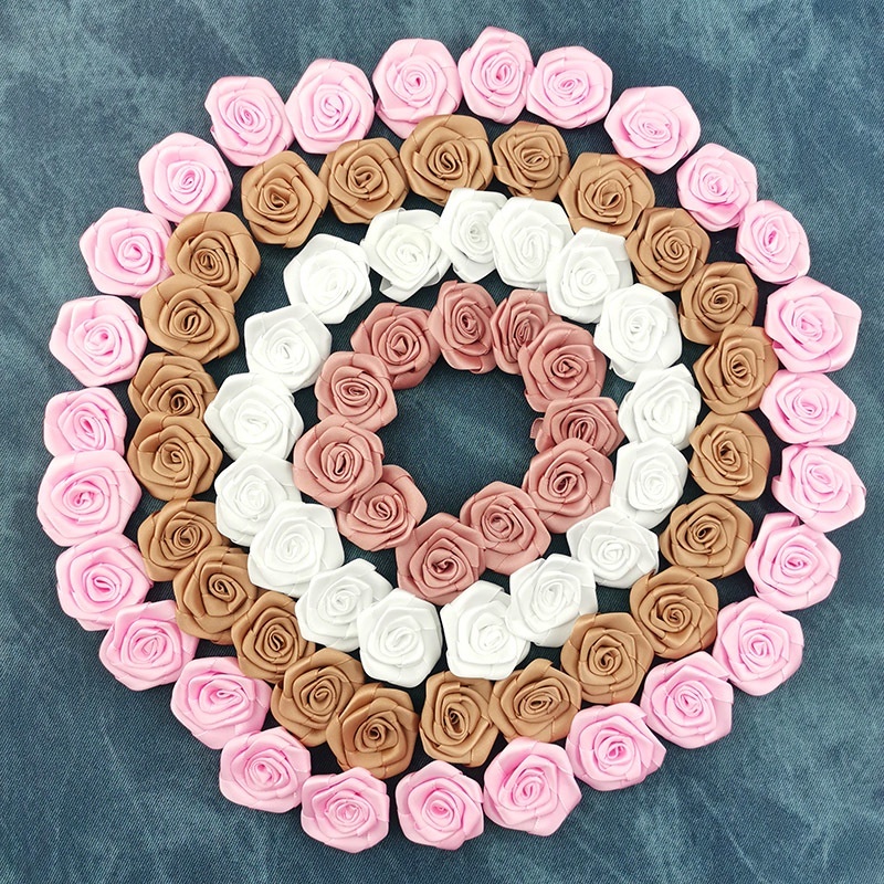 30 Unidades/Pacote 4cm X 4cm Artesanal Cetim Rosa Fita Tecido Apliques De Flores