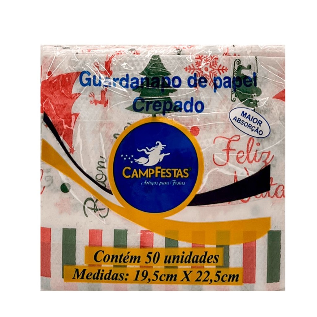 Deixe sua ceia e confraternização natalina ainda mais especial com os Guardanapos de Papel Feliz Natal da CampFestas . Produzidos em papel crepado de alta absorção, eles são unem praticidade e uma linda decoração temática para sua mesa de festa, garantindo um toque de magia para a noite. A estampa natalina com árvores, flocos de neve e a frase "Feliz Natal" é perfeita para criar um ambiente acolhedor e festivo, complementando sua decoração de forma charmosa e funcional. Características do Produto: Estampa: Natalina (com árvores, flocos de neve e a frase "Feliz Natal") Material: Papel crepado de maior absorção, resistente e de uso único. Quantidade: Pacote com 50 unidades Medidas: 19,5 cm x 22,5 cm (medida do guardanapo dobrado) Uso: Ideal para festas, jantares e ceias de fim de ano.