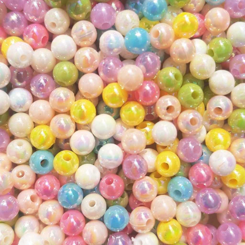300 Miçanga Pérola Bolha Colorido 8mm Bola Com Miolo Biju