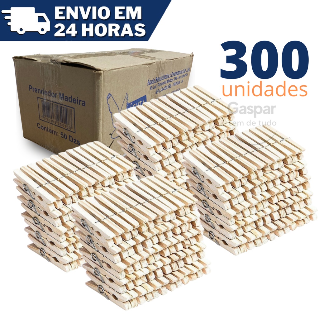 300 Prendedores Pregadores Roupa Madeira Artesanato Embalagem