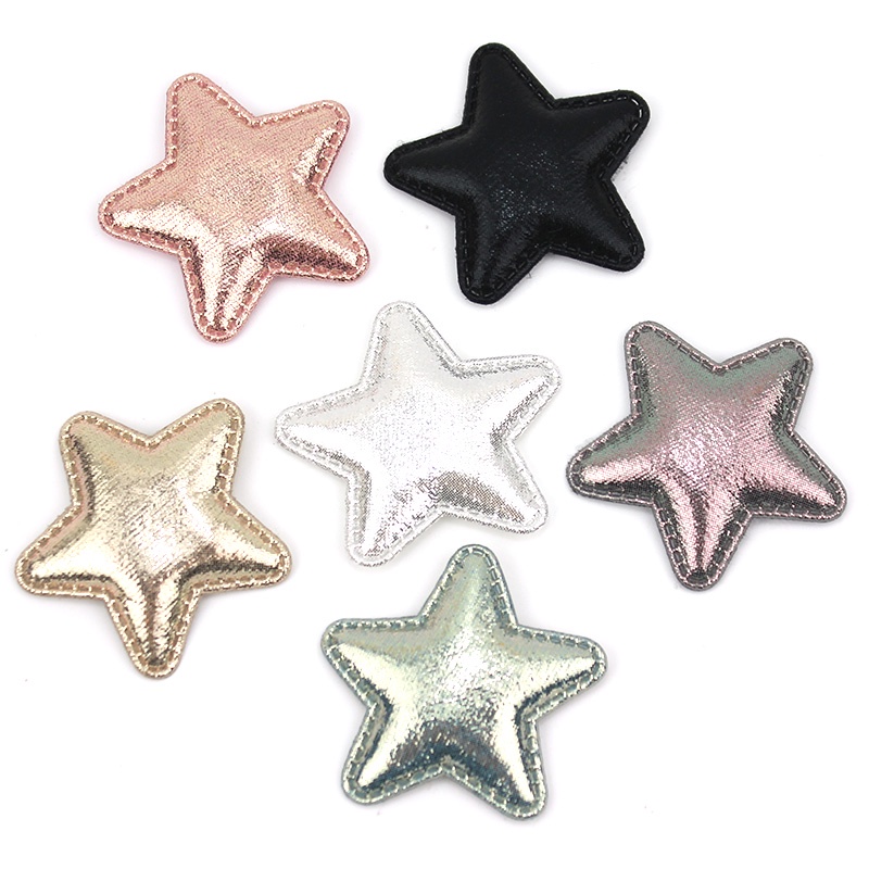 30Pcs 4,8cm Pele De PU Brilhante Apliques Em Forma De Estrela De Couro Acolchoados Para Cabeleireiro Presentes Artesanato Decoração Acessórios De Roupas