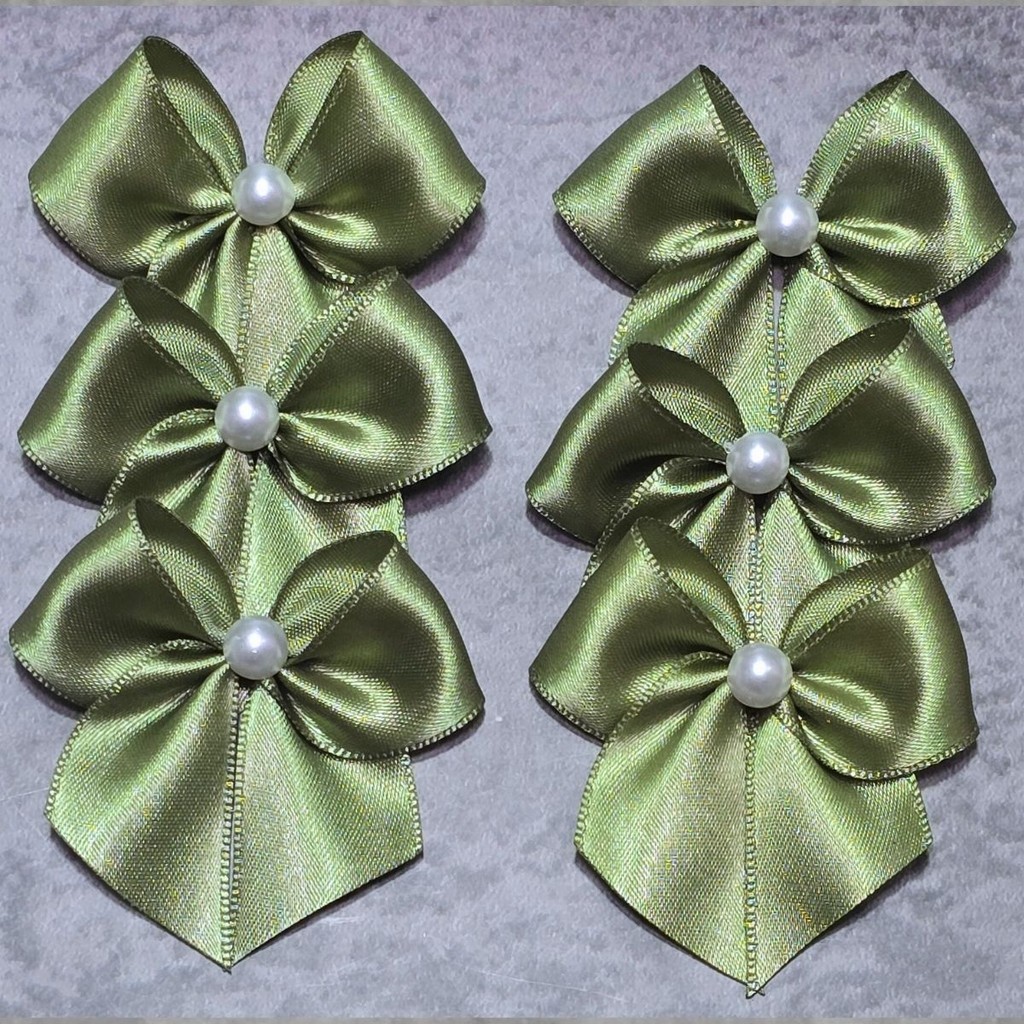 30un Laço Cetim Número 5 Acabamento D Pérola Verde Militar