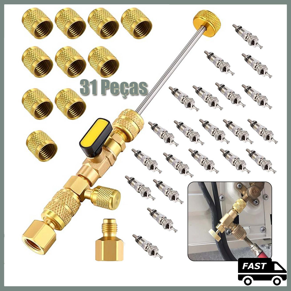 31 peças extrator de válvula de ar condicionado-conjunto completo de cobre/latão + válvula de Backup