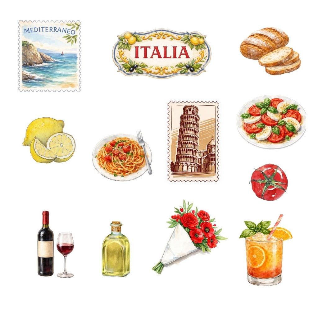 35 Adesivos Itália Aesthetic Para Colagem e Personalização Scrapbook Journal Capinhas