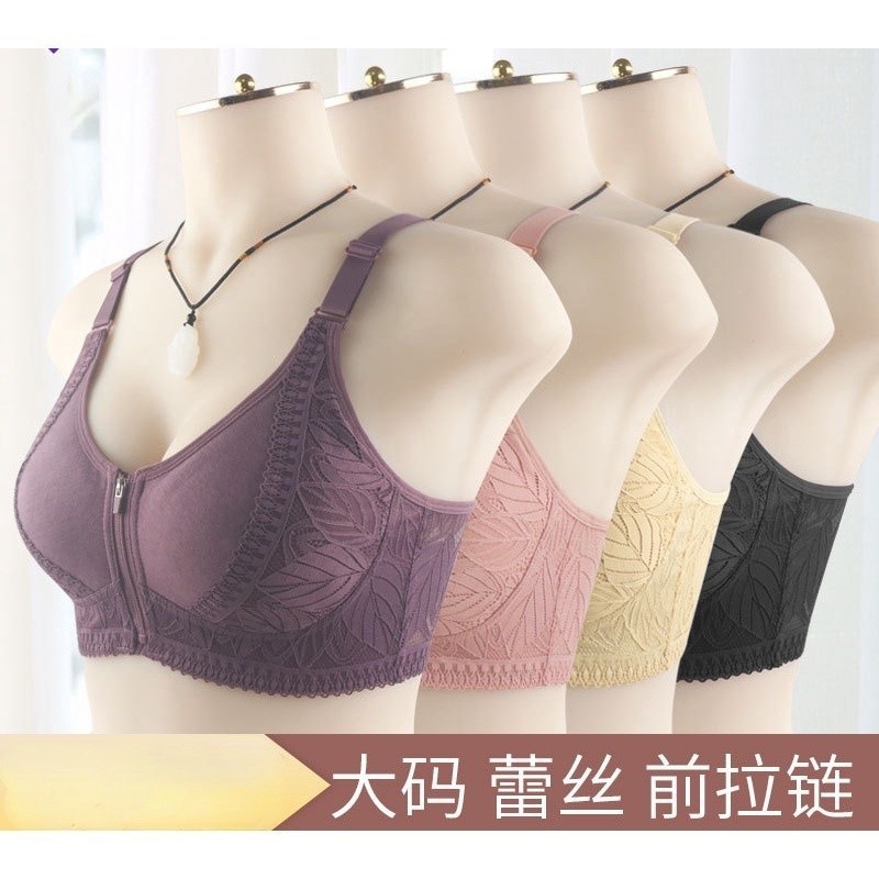 36-52 Novo Tamanho Copo De Algodão Macio Zíper Frontal Meia Idade Lingerie Feminina Renda Sem Costas Sutiã Grande DMFH