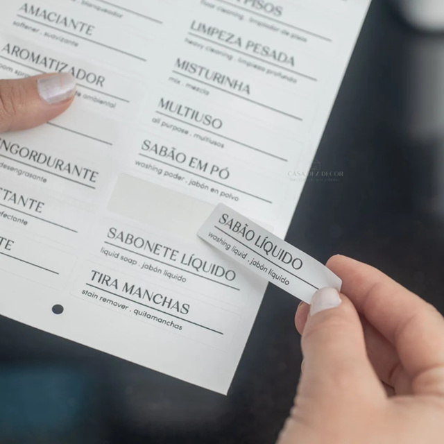 A Etiqueta Adesiva para Organizar Lavanderia é uma solução prática e funcional para otimizar o ambiente da sua lavanderia. Feita com material resistente, oferece durabilidade e fácil fixação em superfícies de acrílico ou outros materiais. Com design prático, as etiquetas ajudam a identificar produtos e utensílios, facilitando a organização e proporcionando mais agilidade nas tarefas do dia a dia. Ideal para ser aplicada em prateleiras, gavetas ou caixas de armazenamento, garantindo um ambiente mais arrumado e funcional. A Etiqueta Adesiva para Organizar Lavanderia é ideal para quem busca praticidade e organização no ambiente de trabalho doméstico. Com características específicas, ela oferece: - Material resistente: Fabricada em adesivo de alta qualidade, garantindo durabilidade e resistência ao uso constante. - Fixação eficiente: Ideal para ser aplicada em superfícies de acrílico, plástico e outros materiais, com aderência forte e segura. - Design funcional: Com espaço para rótulos, permite a identificação clara de itens como detergentes, produtos de limpeza, roupas e acessórios de lavanderia. - Fácil aplicação e remoção: Pode ser aplicada com facilidade e removida sem deixar resíduos, sem danificar as superfícies. - Estilo minimalista: Estética clean que se adapta a qualquer estilo de decoração, agregando sofisticação à organização. Essas características fazem da Etiqueta Adesiva uma escolha excelente para otimizar a rotina na lavanderia, proporcionando um ambiente mais organizado e prático.