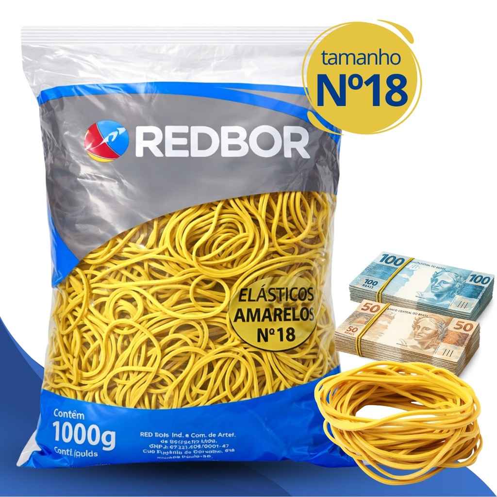 OLÁ SEJA BEM VINDO(A) À NOSSA LOJA! "AOS VENDEDORES" - FOTOS AUTORAIS E REGISTRADAS (BPP) - NÃO COPIE! PRODUTO COM NOTA FISCAL E GARANTIA "ELÁSTICOS Nº18 AMARELO" Elástico de borracha amarelo tamanho Nº 18, indicado para organização no comércio, escritórios e uso geral. Fabricado com material resistente e durável, possui ótima elasticidade e comprimento aproximado de 7 cm. O produto possui variação de quantidade, sendo necessário selecionar a opção correta no momento da compra: 1.200 unidades, 2.400 unidades, 3.600 unidades, 4.800 unidades ou 6.000 unidades. DESCRIÇÃO: Material: Borracha Tamanho: Nº18 Pacote: 1Kg Quantidade por pacote: 1200un APROVEITE O FRETE!!! Adicione mais produtos em seu carrinho!! Qualquer dúvida estamos à disposição no campo de perguntas.