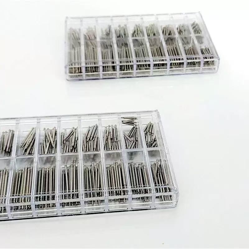 Descrição: 1. Estes pinos conectores para pulseiras de relógio vêm embalados em uma caixa de plástico transparente, com 18 tamanhos diferentes de pinos armazenados separadamente para fácil acesso. 2. Pinos conectores para pulseiras de relógio de aço inoxidável com flange dupla, adequados para conectar pulseiras de metal. 3. São um auxílio eficaz no reparo de pulseiras de relógio ou na substituição de outros acessórios. 4. São uma ferramenta essencial para relojoeiros, entusiastas de relógios ou para aqueles que desejam consertar seus próprios relógios. 5. 18 tamanhos diferentes de barras de mola para pulseiras de relógio, com diâmetros que variam de 8 mm a 25 mm. Material: Aço inoxidável Diâmetro: 1,5 mm Quantidade: 360 peças