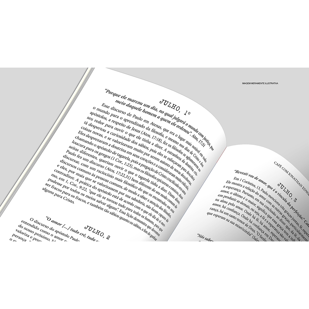 A obra de Jonathan Edwards permanece viva. Este livro reúne trechos traduzidos dos escritos desse pregador que se tornou ícone da salvação pela graça de Deus. Edwards é estudado por cristãos modernos em razão de ser considerado o mais importante dos calvinistas estadunidenses, religiosos que defenderam uma “vida pura”, motivo de serem denominados “puritanos”. Entre estímulo para viver melhor, advertências, louvores e admoestações sobre a conduta cristã, os leitores encontrarão 365 devoções extraídas dos sermões fundamentados em textos bíblicos, sem os quais, segundo Edwards, “a congregação não deve dar crédito ao que o pregador disser”.