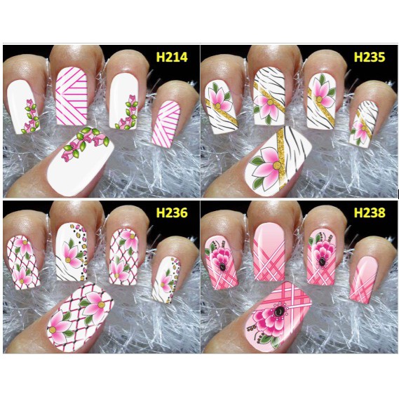384 Películas Para Unhas 32 Cartelas Adesivos C Flores Kit 4