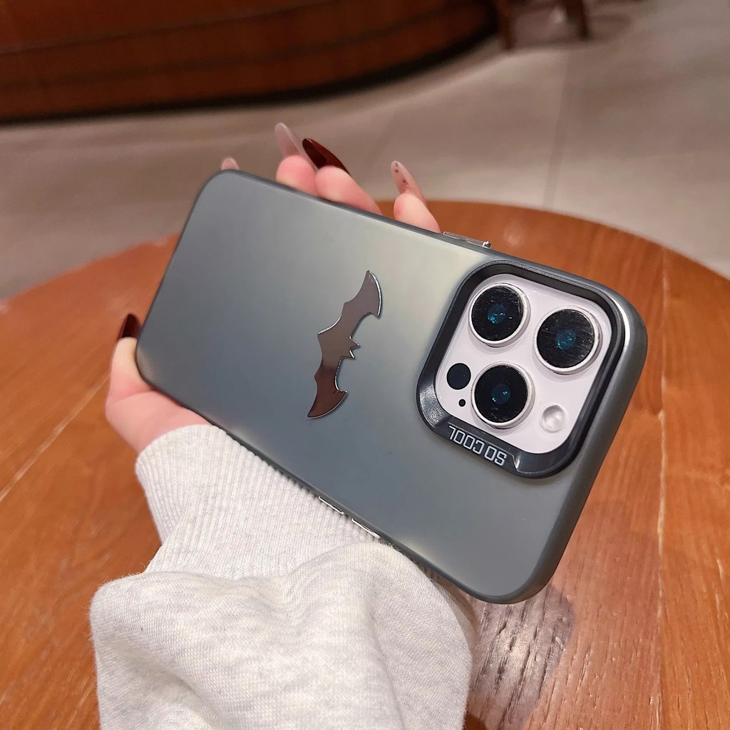 3D Prata Morcego Adesivos Caso De Telefone Para iPhone 16 15 14 13 12 11 Pro Max X XS XR 7 8 Plus Capa Dura À Prova De C