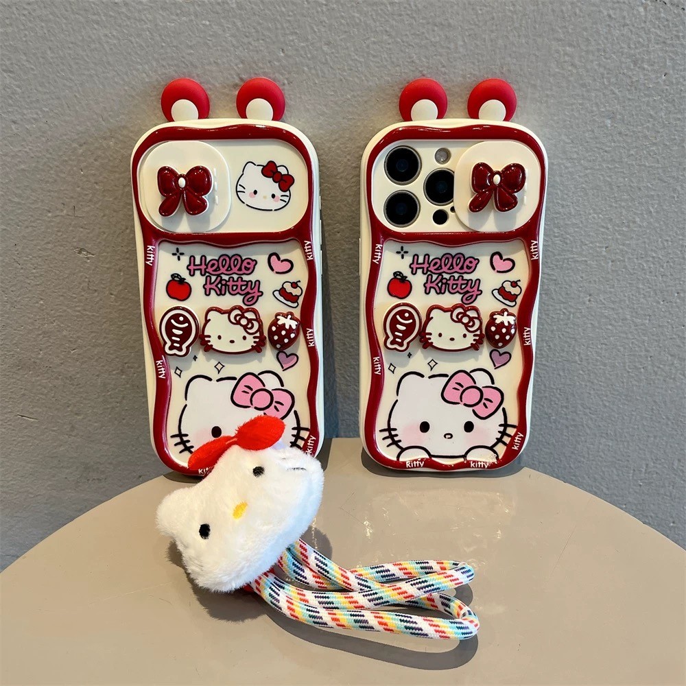 3D Vermelho Morango Kitty Cordão Janela Deslizante Caso De Telefone Para iPhone 17 Pro Max 16 Plus 15 14 13 12 11 À Prov