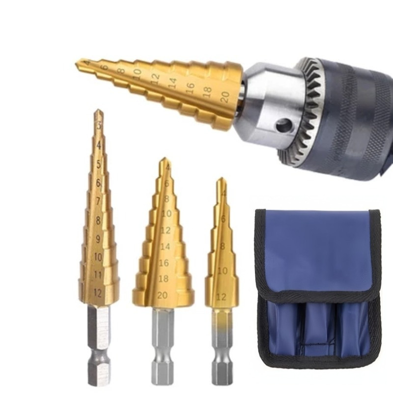 3PCS Broca HSS Hexagonal Titanio Perfuração Metal Madeira Revestimento Anti-Desgaste Hexagonais Cônicas Brocas Jogo