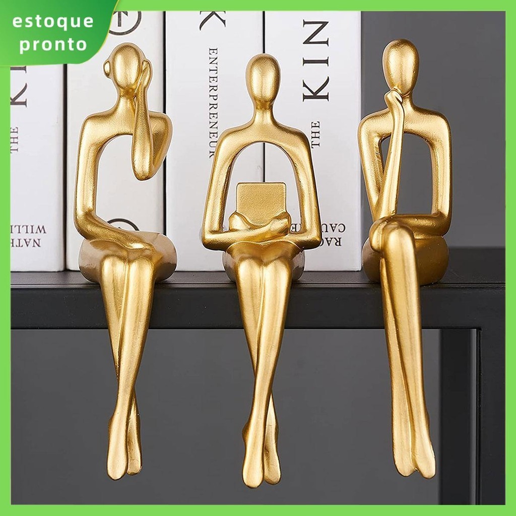3Pcs Thinker Statue Gold Decor Arte Abstrata Figuras De Ouro Resina Dourada Decoração De Prateleira SHOPSKC9180
