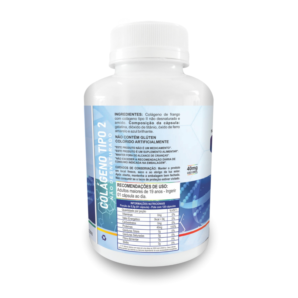 3x Colágeno Tipo 2 II 40mg 120 Capsulas (360 Cápsulas total) Tabela Nutricional: Valor Calórico 0Kcal, Proteínas 40mg, Não possui quantidade significativa de carboidratos, gorduras totais, fibra ou sódio Apresentação: Nome: Colágeno Tipo 2 II 120 Cápsulas Tree of Life Tipo: Pote com 120 Cápsulas Kit com 3 frascos Dosagem: 40mg de Colágeno Tipo II por cápsula Não Contém Glúten Não Contém Aromatizante Sem Açúcar Sugestão de uso Ingerir 1 cápsula ao dia. Conservação Após aberto, manter a embalagem bem fechada e armazenar em local fresco, seco (15° a 25°) e ao abrigo de luz. Produto lacrado para sua proteção. Manter fora do alcance de crianças. Produto ISENTO de registro da Anvisa conforme resolução RDC 27 de 06 de agosto de 2010. PRODUTO A PRONTA ENTREGA, ACOMPANHA NOTA FISCAL E POSSUI ENVIO IMEDIATO