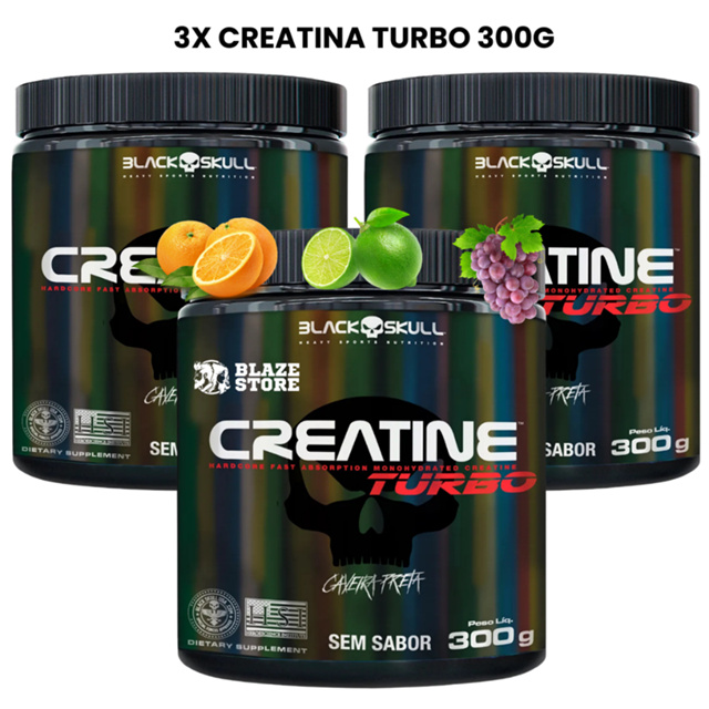 3x Creatina Turbo 300g Black Skull Caveira Preta Melhor Custo Beneficio Promoção Barato