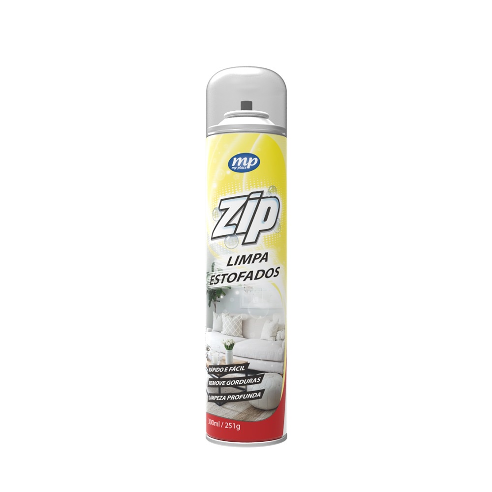 ZIP LIMPA ESTOFADOS O Zip Limpa Estofados foi desenvolvido para melhorar a eficiência na limpeza a seco. Remove sujeiras profundas e difíceis, como gorduras. Aplicações: - É ideal para a limpeza de sofás, tapetes e colchões, podendo também ser utilizado na limpeza de veículos, estofados, tetos e carpetes. Instruções de uso: 1. Agite bem antes de usar. 2. Segure a embalagem na posição vertical. 3. Pulverize o produto direcionando o jato lentamente sobre a superfície desejada. 4. Deixe agir por 2 minutos. 5. Remova o produto com uma esponja ou pano úmido. Obs: Evite dirigir o jato sobre pessoas, plantas, animais e aquários, alimentos e utensílios de cozinha, paredes, chamas ou superfícies aquecidas. Conteúdo: 3 unidades Spray de 300ml cada Marca: My Place