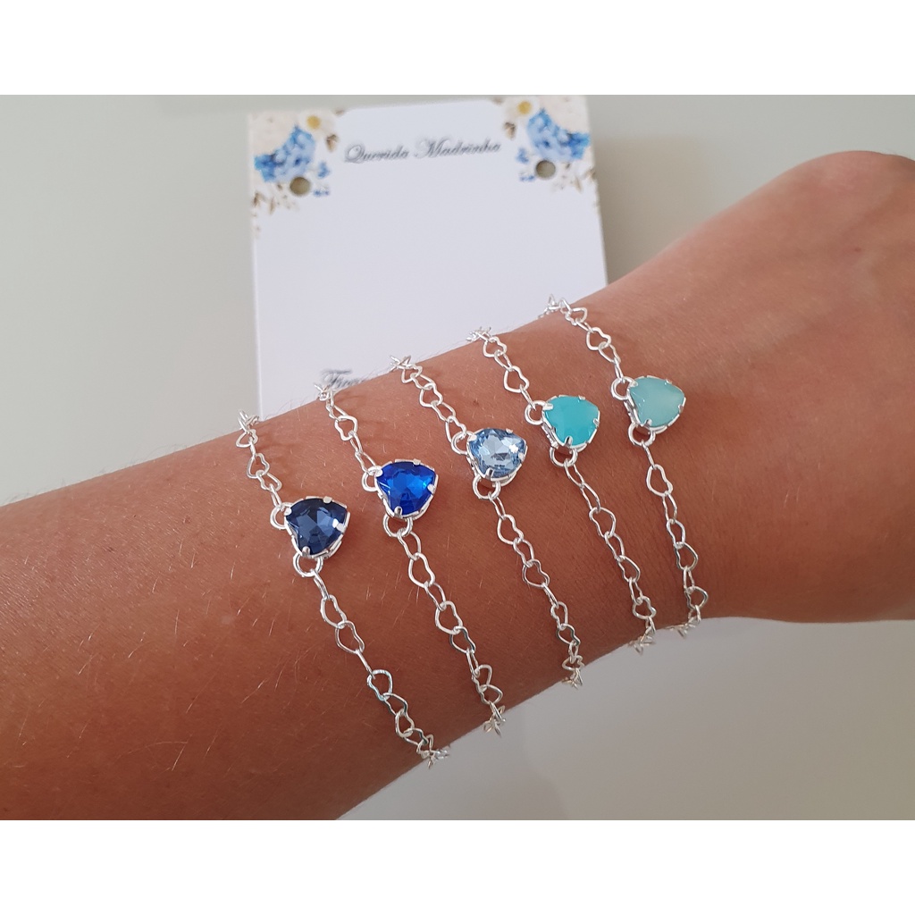 4 a 10 Pulseiras Prata Coração Madrinhas Banho Prata 925 Escolha Cor da Pedra