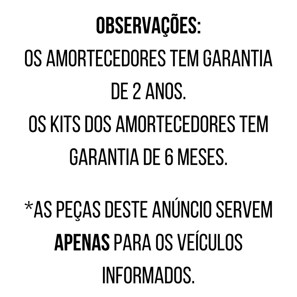 4 Amortecedores Monroe + Kits GM Corsa Classic 2003/2015 PRODUTO NOVO COM NOTA FISCAL E GARANTIA. APLICAÇÃO: GM - Corsa Classic - 2003/2015 IMPORTANTE: Os Amortecedores deste anúncio servem APENAS para os veículos acima. GARANTIA: Amortecedores: 24 meses Kits amortecedores: 6 meses ITENS INCLUSOS: 02 Amortecedores Dianteiros Monroe 02 Amortecedores Traseiros Monroe 02 Kits Amortecedores Dianteiros (Batentes + Coifas + Coxins) 02 Kits Amortecedores Traseiros (Batentes + Coifas) SOBRE NÓS: Na Fast Autopeças, estamos empenhados em oferecer o melhor atendimento e as melhores peças automotivas do mercado. Com uma ampla variedade de peças originais e de alta qualidade, garantimos que seu veículo receba o cuidado que merece. Nossa equipe de especialistas está sempre pronta para ajudar e garantir que você encontre exatamente o que precisa. Visite nossa loja em São Caetano do Sul e descubra por que somos a escolha certa para você e seu carro. Na Fast Autopeças, sua satisfação é nossa prioridade!