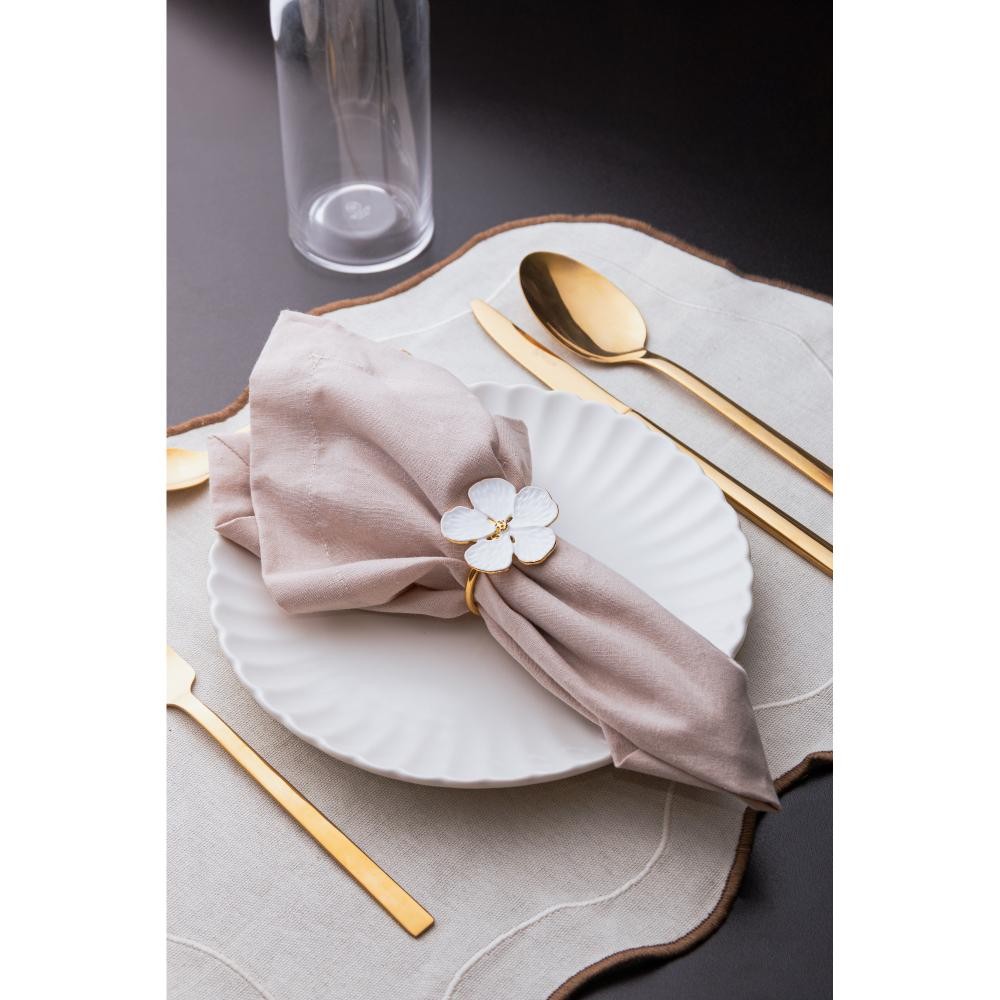 4 Anéis para guardanapos Flower Wolff Branco Zamac
