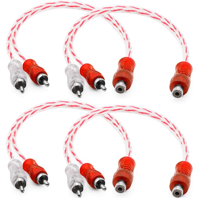 4 Cabo Y RCA Blindado 1 Femea 2 Macho Injetado Vermelho 4mm Som Automotivo Caixa Bob Paredão
