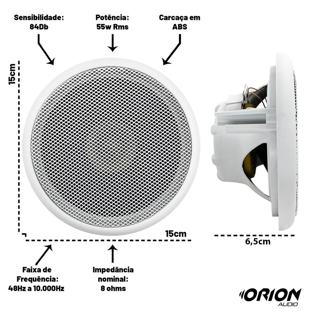 Mais de 15 anos de experiencia no mercado com os melhores produtos e o melhor atendimento! 2 Pares de Caixas de Som Arandelas de Embutir Teto 5 polegadas Redondas Brancas As Arandelas para som ambiente de 5 polegadas Orion e discreta e elegante, possui bordas arredondadas, o que proporciona um acabamento moderno e elegante, além de integrar perfeitamente a arandela ao ambiente. O alto-falante de 5 Polegadas 55W 8 Ohms proporciona um som ambiente agradavel, possui um sistema de suportes para facilitar a instalação. Ideal para instalar no teto de Gesso, Pvc, Sanca, Madeira, Salas, Escritórios, Quartos, Recepção, etc. Especificações: Faixa de Frequência: 48 HZa 10.000Hz Impedância Nominal: 8 ohms Potencia musical: 55 Wrms Sensibilidade: 84dB Carcaça em ABS Bobina Simples Diâmetro Nominal: 15 cm Dimensões internas: 13,6 cm Altura:6,5 cm Peso: 378g (cada) Conteúdo da embalagem: - 04 Arandelas de Som 5 Polegadas - Suportes para Fixação