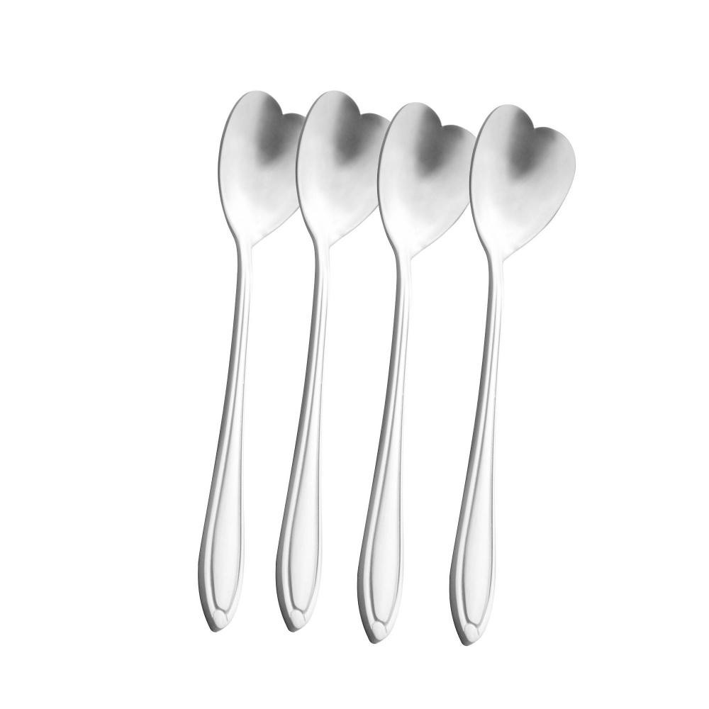 4 Colheres de Chá Wolff Heart Prata de Aço Inox