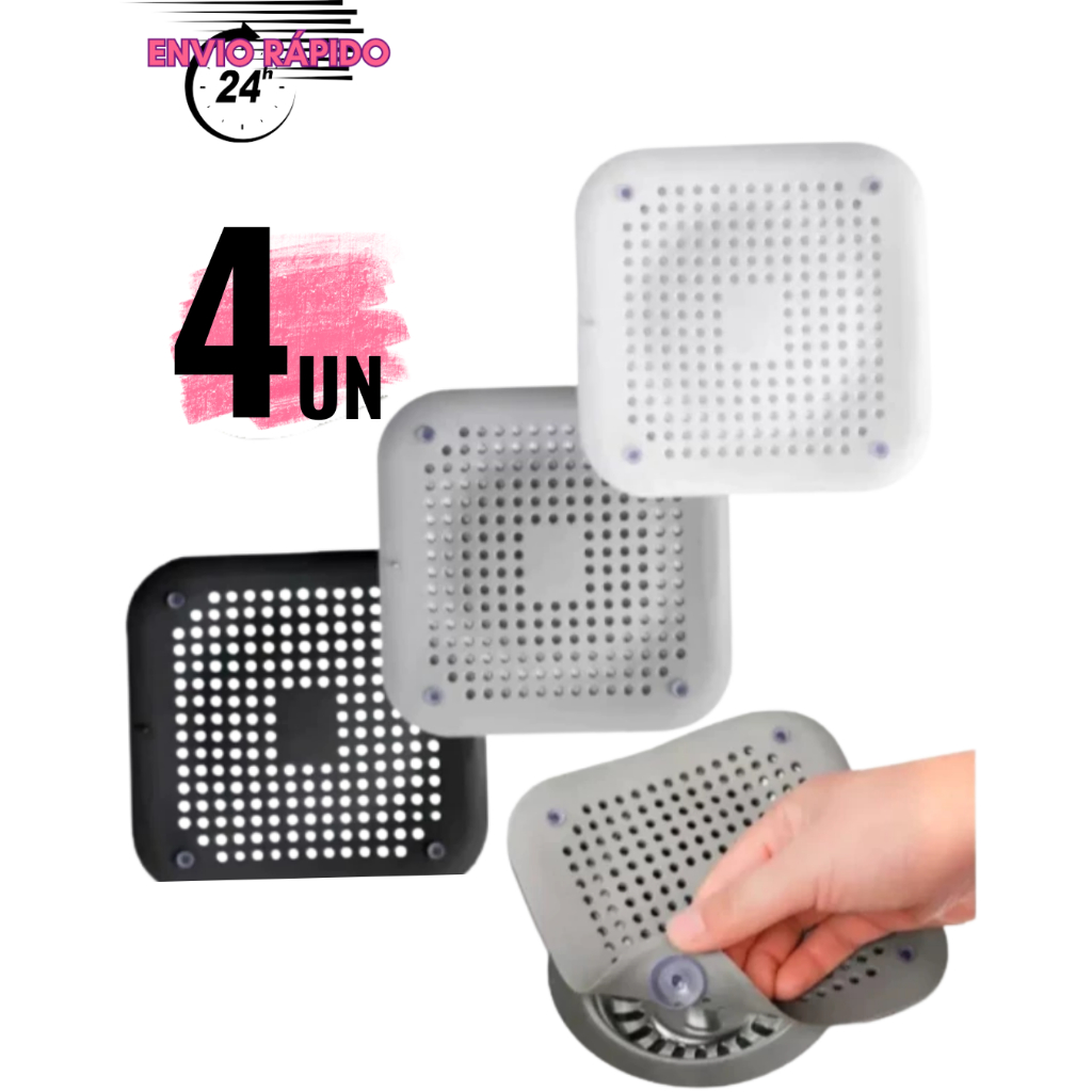 4 Conjunto Protetor Tampa De Ralo P/ Banheiro e Cozinha De Silicone Anti Cabelos, Pelos Petz Insetos Indesejáveis