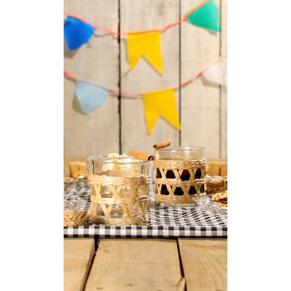 4 Copos Baixos Wolff de Vidro com Sisal 320ml