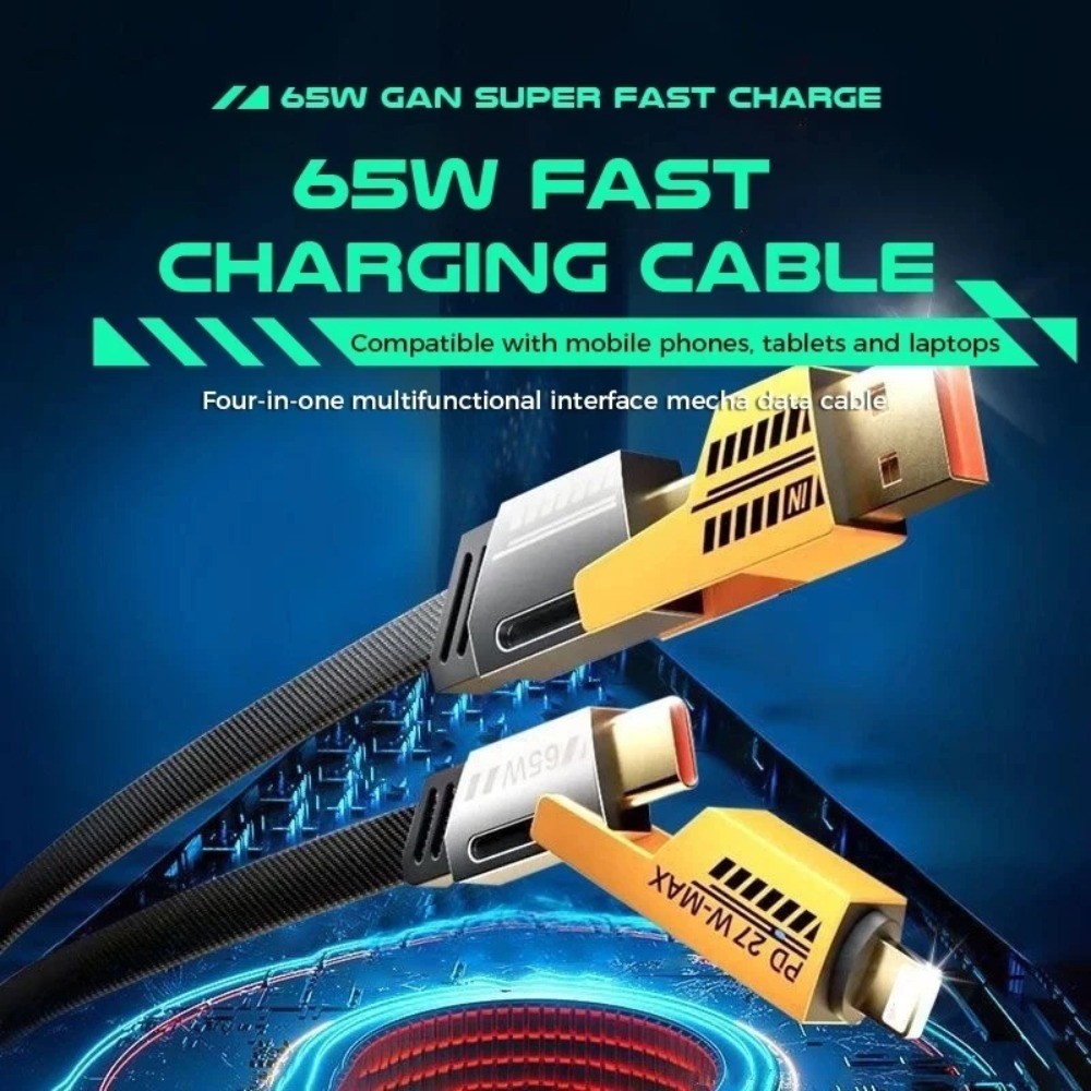 4 Em 1 Estilo Mecânico 65W Carregamento Rápido Dados USB A + C Cabo Para Tipo iOS Fio Cabos Lilicase