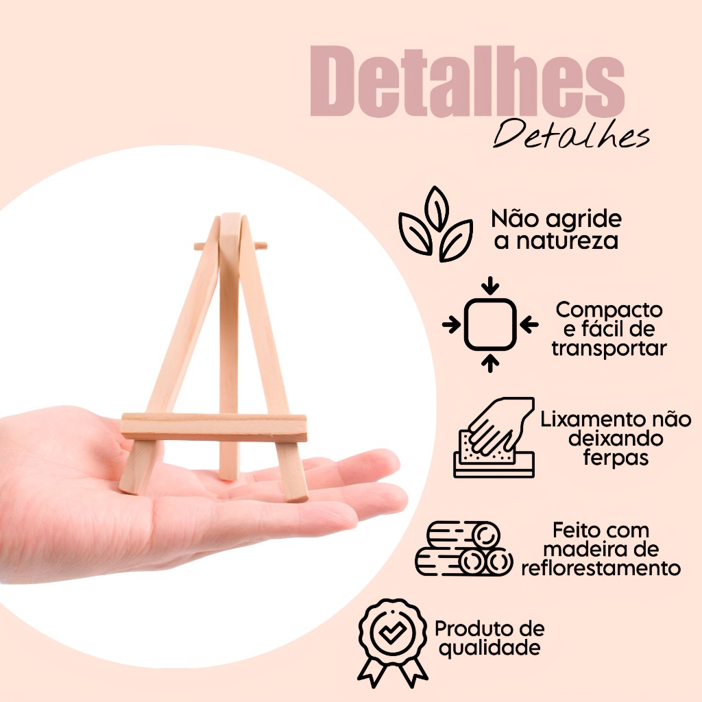 Na Loja Belauê você encontra artesanato em Madeira Pinus de excelente qualidade voltado para decoração de diversos ambientes. Opções : 2 MINI CAVALETE 4 MINI CAVALETE Suporte Pratico para realização de pequenas obras de arte, como os seus cartões, smartphones, menus e fotos. Dimensões do produto (em cm): 9 Larg. x 15 Altura, e base de apoio com 2 cm DOBRÁVEL ATENÇÃO: - Produtos artesanais podem sofrer pequenas variações de cores. - Os produtos são embalados com muito cuidado para que você receba seu pedido em perfeito estado. Qualquer dúvida, entre em contato conosco através do campo de perguntas que estamos sempre disposição. PRONTA ENTREGA - LOJA DE FÁBRICA - ENVIO PARA TODO O BRASIL EM MENOS DE 24HORAS - TODOS OS PRODUTOS ACOMPANHAM NOTA FISCAL Será uma satisfação tê-los como nosso cliente!