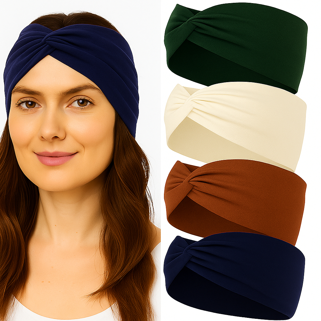4 pcs faixa de cabeça larga - Mistura macia, Estilo Turbante com Nó para yoga, Corrida e Esportes