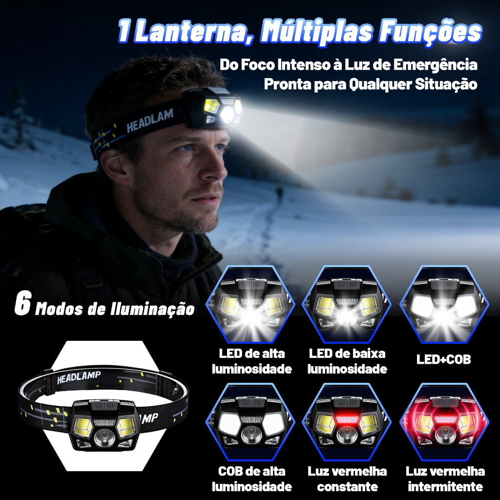 ✨ Apresentação do Produto A Lanterna de Cabeça BL-CCJ-302 é a escolha ideal para quem procura lanterna cabeça potente, recarregável e com sensor inteligente. Projetada para uso profissional, outdoor e situações de emergência, oferece 1000 lumens reais, alcance de até 800 metros, mãos livres e máxima eficiência energética. Um item funcional que também se destaca como presente útil e inteligente. 🔧 Especificações Técnicas: Modelo: BL-CCJ-302 Tipo: Lanterna de cabeça / Headlamp Potência: 1000 lumens Alcance luminoso: até 800 metros Fonte de luz: LED XPE + COB Modos de iluminação: 6 modos LED alto brilho LED baixo brilho COB alto brilho LED + COB simultâneo SOS luz vermelha contínua SOS luz vermelha intermitente Sensor por movimento: Sim Alimentação: Bateria recarregável USB Tempo de carga: 2–3 horas Autonomia máxima: até 15 horas Ajuste de ângulo: 60° Peso: aprox. 200 g Material: ABS resistente Proteção: IPX4 – resistente a respingos 🚀 Por Que Escolher? ✔ Controle por sensor – ligue, desligue ou mude o modo com um simples gesto ✔ Lanterna cabeça LED potente – 1000 lumens com iluminação clara e estável ✔ XPE + COB – foco de longo alcance + luz ampla para trabalho próximo ✔ Alcance até 800m – superior às lanternas de cabeça comuns ✔ 6 modos de uso – trabalho, camping, pesca e emergência ✔ USB recarregável – mais economia, sem pilhas ✔ Leve e confortável – uso prolongado sem desconforto ✔ IPX4 – ideal para ambientes externos e uso diário 👉 Uma lanterna testa recarregável pensada para quem exige desempenho real. 🌍 Aplicações e Cenários de Uso: 🔧 Lanterna para oficina mecânica ⚡ Lanterna para eletricista e manutenção 🎣 Lanterna pesca noturna 🏕 Camping, trilha e atividades outdoor 🚶 Caminhada noturna 🚗 Emergência automotiva 🏠 Uso doméstico e apagões 🎁 Presente prático para pais, maridos, amigos e profissionais Mais do que iluminação, é segurança, praticidade e confiança no escuro. Um produto versátil, durável e funcional — ideal para uso diário ou como presente útil que realmente será usado. 🔍 Termos de Busca que Geram Vendas : lanterna cabeça, lanterna cabeca, lanterna testa, lanterna testa recarregavel, lanterna cabeca recarregavel, lanterna led cabeca, lanterna cabeca led recarregavel, headlamp, farol cabeca, lanterna cabeca forte, lanterna cabeca potente, lanterna cabeca profissional, lanterna cabeca sensor, lanterna cabeca ipx4, lanterna trabalho, lanterna oficina, lanterna mecanico, lanterna eletricista, lanterna pesca, lanterna pesca noturna, lanterna trilha, lanterna camping, lanterna portatil recarregavel, lanterna led potente, lanterna uso externo, lanterna cabeca alto alcance, lanterna cabeca 1000 lumens