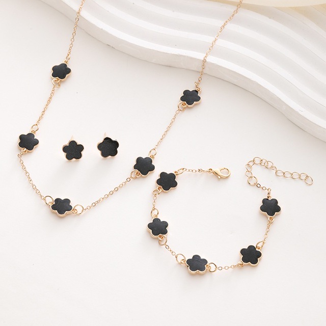 4 Pcs/Set Fashion Black Clover Jewelry Sets Pulseiras Colares Brincos Parthenocissus Grama De Ouro 18k Pulseira Da Sorte Para Mulheres Coréia